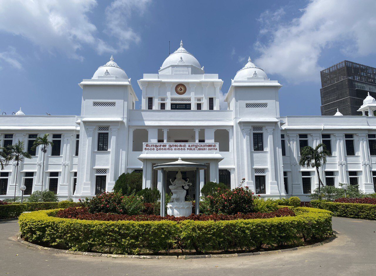 Our route to Pt 3 – the temple – took us via the Public Library, which was reputed to be worth a gander. And so it proved. A rather imposing building, in a striking dazzling white. We were allowed to enter, though photography was prohibited (seems to be quite a lot of prohibition hereabouts – doubtless inherited from our mob) but I got a nice shot of the exterior, and flouted the rules in the archive section when no-one was watching. By pure chance, the random volume I took off the shelves proved to open with The Times’s report on ‘the’ Isle of Wight Festival: a quirky thing to find mouldering away in a corner of a library on the northern tip of Sri Lanka.