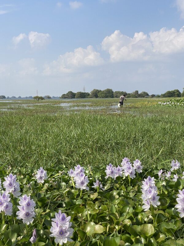 Headed first for a ‘lakeside view’, which again started out a bit weirdly, as the road turned into a track became a path which steadily got narrower and narrower until it eventually petered out into nothing, with no sign of the promised ‘view’. But we could see the lake, maybe fifty metres ahead, surrounded by reeds and boggy ground, lush with beautiful wild flowers, a lone fisherman thigh deep in the water.