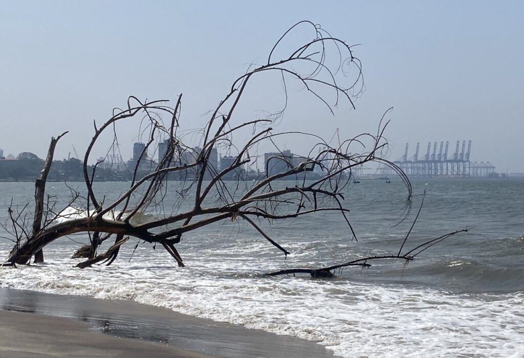 At a bit of a loose end, we decided to take a bus a few miles north to Crow Island Beach, and spend a little time away from the city mania. And it all went well. The beach turned out to be a scrappy bit of foreshore,m but a small shack sold us some lemonade and we sat on a bench, just enjoying the breeze and the quiet. Then back to town, and to the station, where we joined a hundred other tourists on the train to Galle. And on,in our case, to Matara – the end of the line, and our stopping off point for a tuk tuk ride to our Tallala guest house.