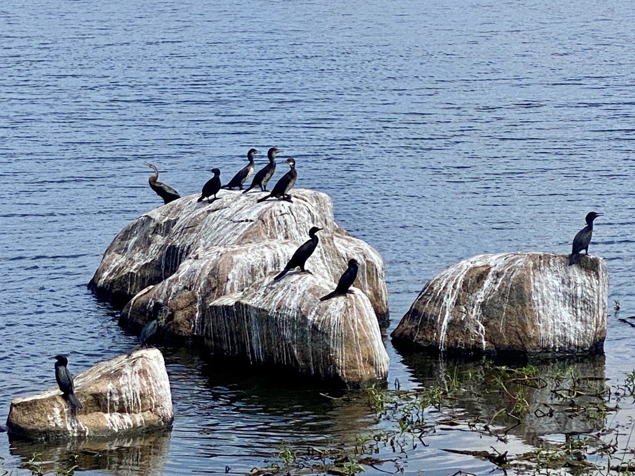 Then back on the bike, and return to the ranch by way of some very off the beaten tracks, including a bit where we came up a rise and suddenly found ourselves on a track alongside a lake – all reeds and waterlilies and the odd bunch of cows munching their way placidly along the banks. Lovely!