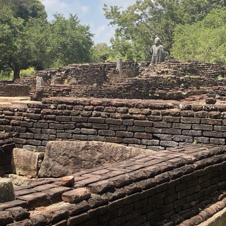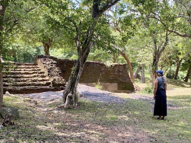 Then off to our third destination: Welgam Vihara – an ancient Buddhist site, mostly ruins in the jungle since being pretty much laid to waste in the 11th century. The Buddha in one of the pics is apparently moonstone, all detail eroded by the passage of 2,200 years. There wasn’t really that much to see – it’s kind of in the nature of ruins – but it was so peaceful in among the trees that we just sat on a wall and enjoyed the quiet and watched the butterflies.