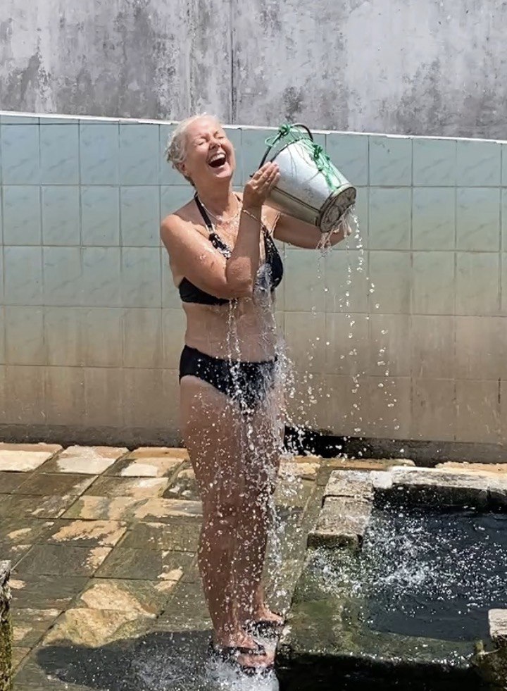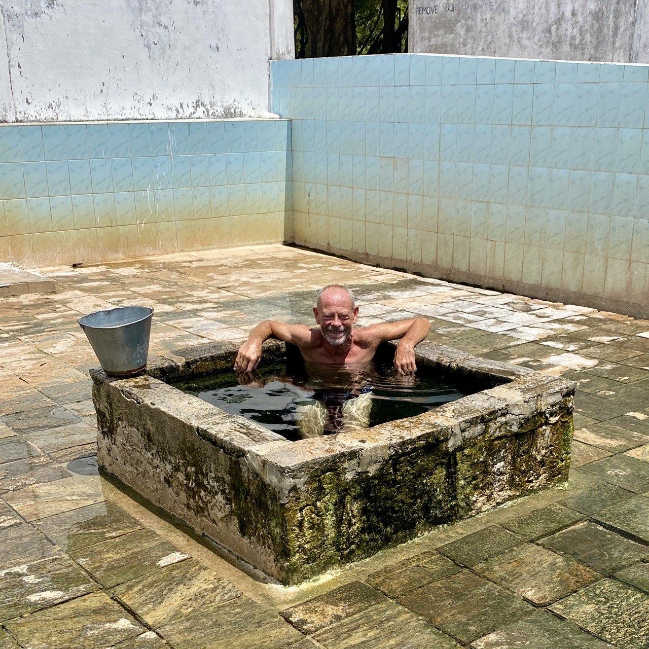 The pic of Virle wasn’t taken at the temple (surprise surprise) but at our next venue: Kanniya hot springs, which proved to be very worthy of their name. A somewhat strange place, once again decidedly delapidated, and on first sight evoking the ‘that’s it?’ we’ve come to recognise from some of our many sightseeing adventures. But in the event it proved to be weirdly wonderful. We got changed in the shabby changing rooms, then simply went between the seven different ‘wells’, supposedly at slightly different temperatures, though to us they all felt blimey that’s hot, pouring buckets over ourselves (and in my case going for the immersion, despite Virle’s ‘I’m not sure you’re allowed to do that’ Is there a prohibition sign? Well then). Sounds totally counter-intuitive, given the heat of the day, but it was actually surprisingly refreshing, and Virle also felt she got some benefit from the promised medicinal mineral qualities.