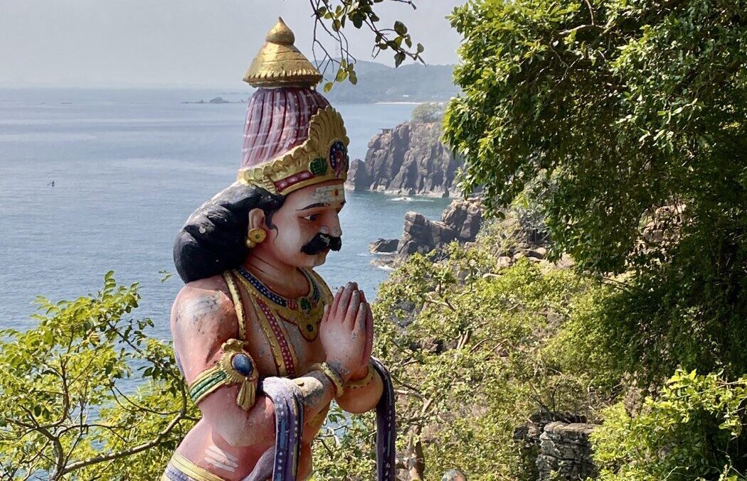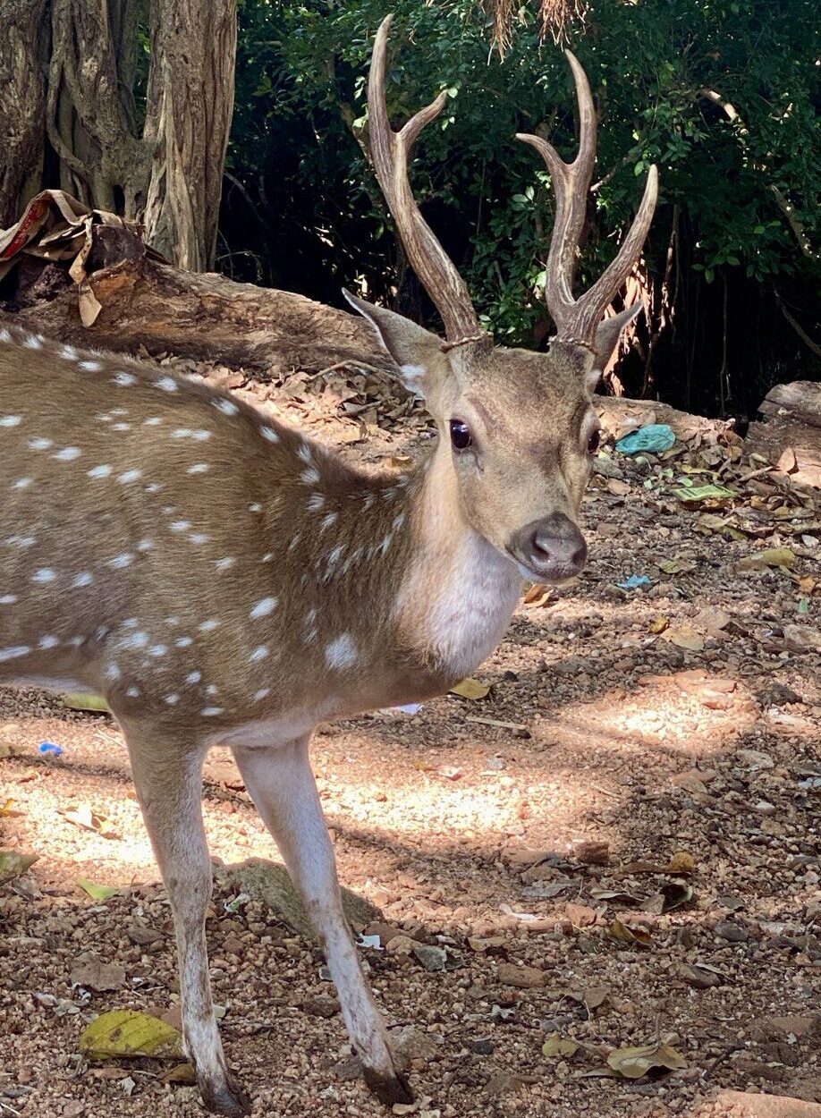 In truth, the temple wasn’t all that. It all felt a bit shabby and unloved. Though I have to say I do love the pragmatism: big, bright, presumably sacred wall paintings, but we need a mains socket, hand me the hammer. And the broom cupboard will be fine in that corner. No standing on ceremony; life goes on. There were also some lovely spotted deer, and a wonderful view over the sea, whence whales are apparently sometimes to be seen. Though not today now there’s a surprise.