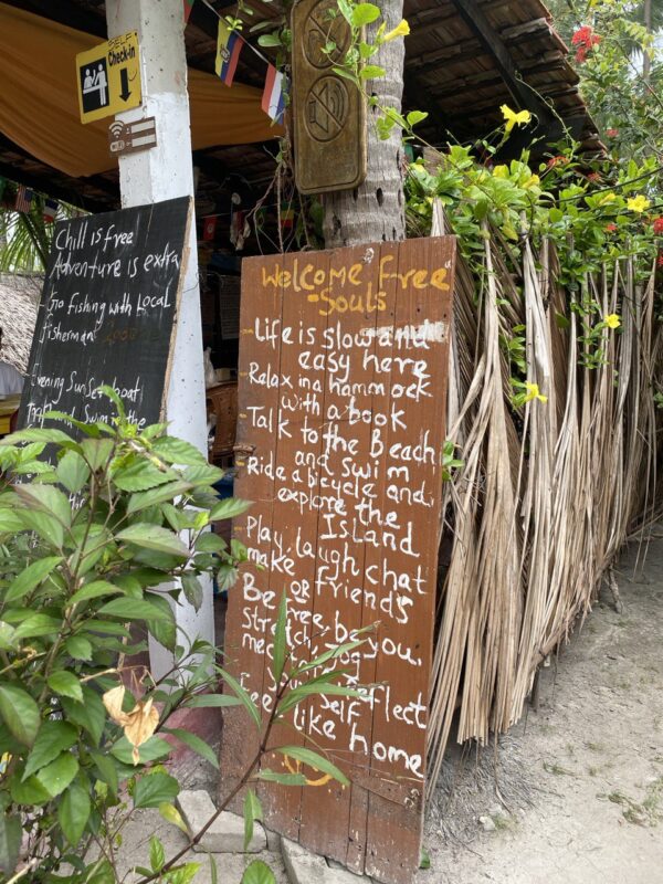 Had a lazy morning hanging around Delft Village, chatting to other guests, fondling the cat, reading books, then headed off for the ferry. We’d already decided on a venue for our farewell lunch: a juice bar we’d passed several times on the main drag. We both really fancied a nice fresh juice, and they sold basic munchies too.