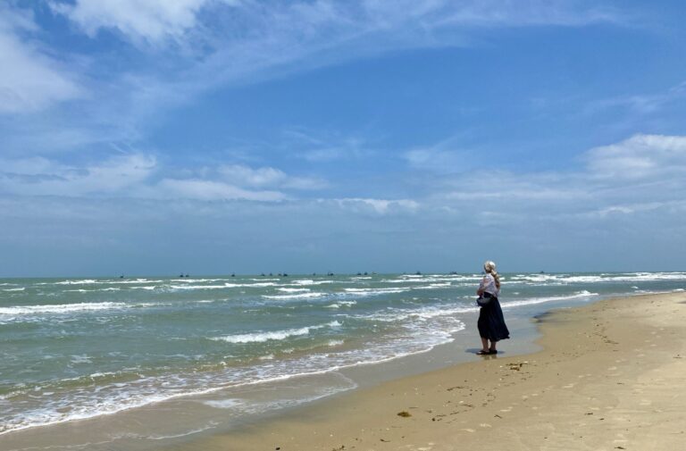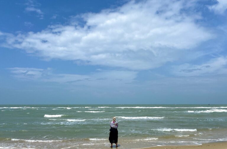 A little way down the coast was a beach, so we went there, and I went for a swim in the rolling surf which was great. A couple of cheerful young boys joined us, asking the usual ‘Where are you from?’ and etcs. The older one gestured, do you have any water? Charmed by their straightforward and matter of fact way of asking, I said yes, and got the bottle from the bag. They both took a swig, not too much, and returned the bottle with a nod of thanks.