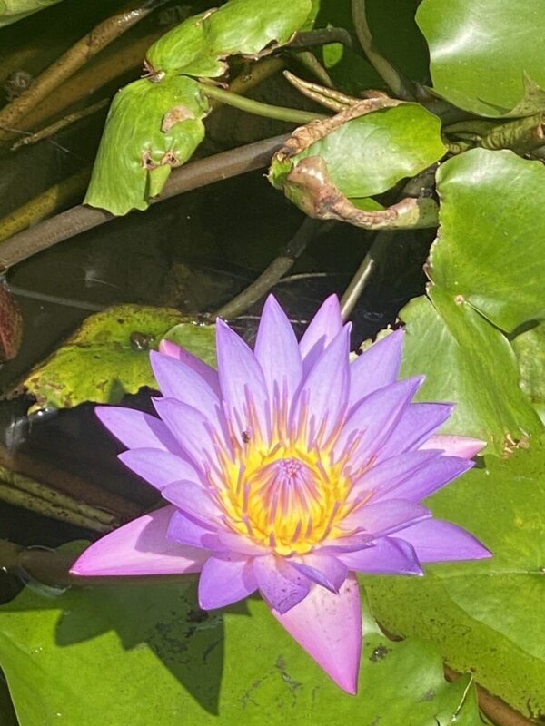 The caves themselves are tucked in under a shelf of rock, which proved to be right at the top of quite a substantial hill. “I thought caves were supposed to be underground,” I faux-grumbled as we hauled ourselves up a succession of flights of steps. Each cave (there are five) is filled with brightly coloured wall paintings, well preserved by the darkness though they’ve been there since 2-300 BC, and, of course, innumerable Buddhas. Despite the hoards, the overall scale meant it was actually perfectly possible to get a really good look at everything, and we wandered around in a happy daze. For all the Buddhas, the murals were perhaps the loveliest feature, painted direct on the undulating rock. And the whole place had a calm serenity, with little pools of water lillies, and busy little monkeys eyeing up your banana.