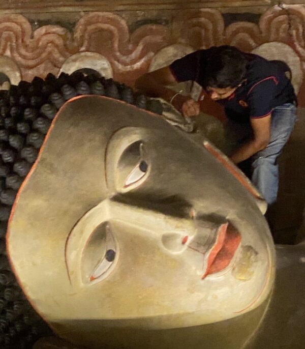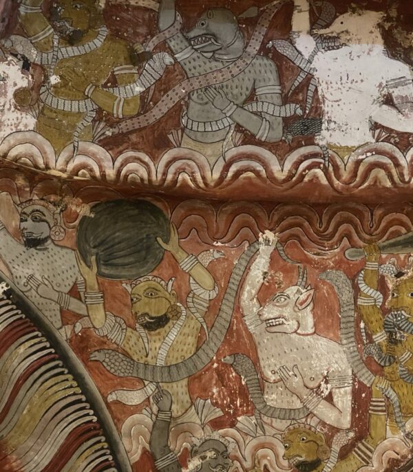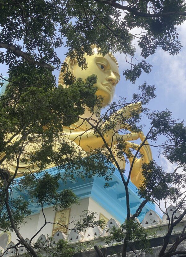 The other thing you have to do while you’re here is go to the cave temple, so after breakfast off we trotted like the dutiful tourists we are. Again, it started a tad inauspiciously when we arrived to discover that as per, we’d arrived at exactly the worst time – just at the start of morning prayer time, when the whole place closes for a quarter of an hour, allowing a good backlog of coach party tick box tourists to build up. (Giveaway term for the TBT: “did”. As in (overheard y’day in an Aussie accent you could cut with a knife): “We did the Temple of the Tooth yesterday.”)